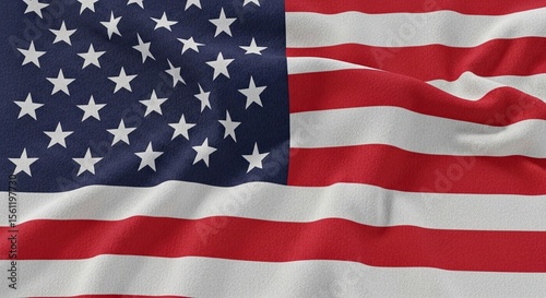 Waving Glory: Close-up of the American Flag in Motion, Symbolizing Patriotism, Independence, and National Identity on a Textured Fabric
