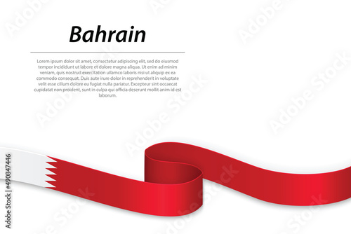 Waving ribbon or banner with flag of Bahrain