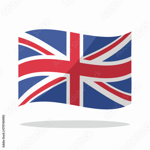 Waving Union Jack Flag with a Shadow on a White Background United Kingdom Great Britain