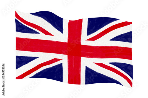 Waving United Kingdom flag with red white and blue colors as a national symbol of Great Britain Hand drawn illustration on a transparent background