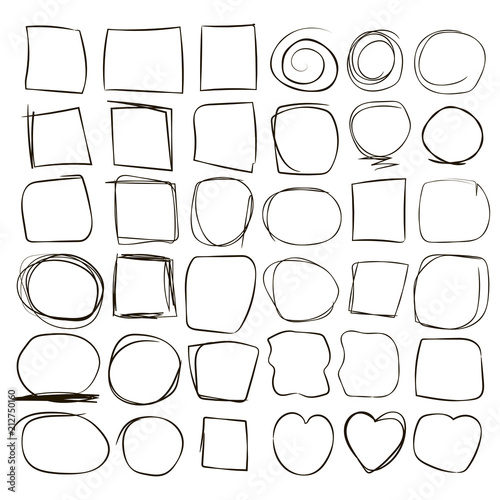 wavy broken zigzag frame strokes outline squares of the heart circle photo line from hand black ink pen pen vector isolated on white background