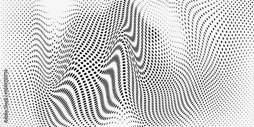 Wavy dot lines background. Pattern of dots, dotted lines, circles of different scale. Futuristic pattern. Monochrome backdrop to create backgrounds, templates, posters in a modern minimalist style