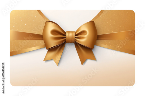 Wavy Edge Gold and White Gift Card Template with Central Bow on Transparent Background for Festive Offers
