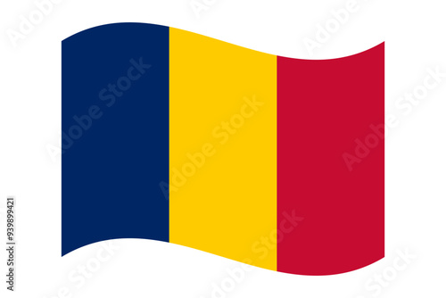 Wavy flag of Chad, isolated on transparent background. Flag of the Republic of Chad. Vector illustration