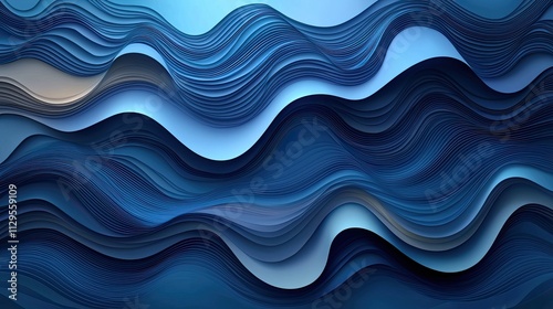 Wavy patterns in various shades of blue create a serene and calming visual in an abstract design