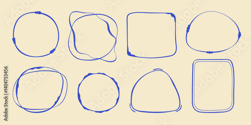 Wavy stamp frame set, vector hand drawn curved borders, abstract wiggle empty wavy curly monograms cadres. Minimalist squiggle scribble swirl design elements. Isolated. Vector illustration.