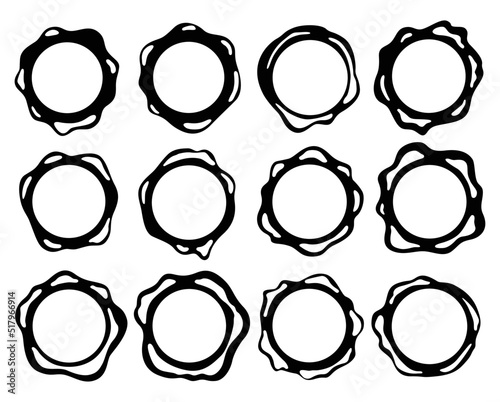 Wax stamp sketches set. Isolated stickers mockup for letter or documents, confidential sign or secure tag, royal guarantee mark for envelop. Icons with empty space for text