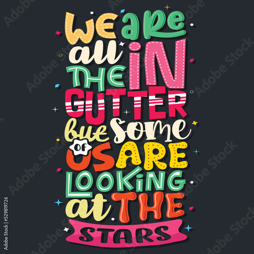 we are all in the gutter but some of us are looking at the stars, Hand-drawn lettering beautiful Quote Typography, inspirational Vector lettering for t-shirt design, printing, postcard, and wallpaper