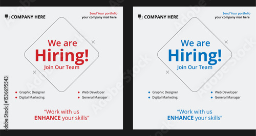 We are hiring job social media posts, ads banner template, Job job vacancy square flyer or web banner Template design