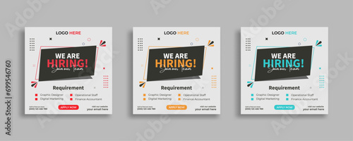We are hiring job vacancy social media post or square web banner template vector design