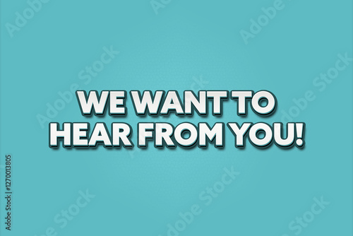 we want to hear from you. A Illustration with white text isolated on light green background.
