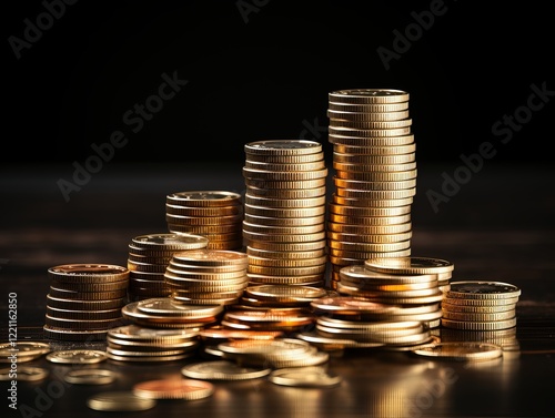 Wealth Grasped Amid Economic Trends: Close-up of Hand Holding Gold Coins, Computer-Generated with High-Quality CGI Rendering.