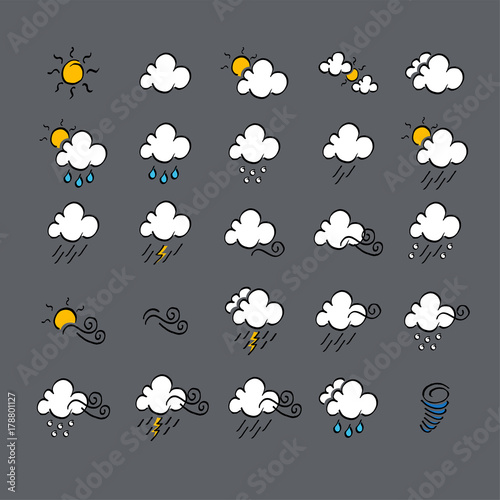 Weather doodle icon set, real pen sketch suitable for for web, mobile and infographics. Vector Illustration