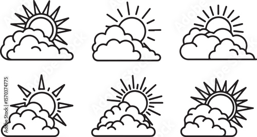 Weather forecast icons featuring sun and clouds in simple black line drawing style