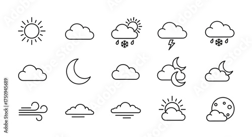 Weather Icon Grid, Simple Weather Icons Line Art Set for Design. set weather icon for ios white background.