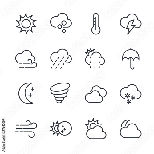 Weather line icon template color editable. Wind, Blizzard, Sun, Rain and more vector illustration for graphic and web design. Weather symbol vector sign isolated on white background.