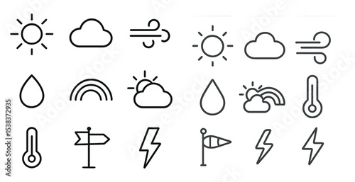 Weather outline icons set – simple, linear climate and forecast symbols