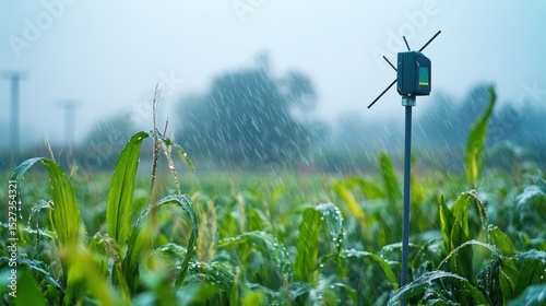 weather station in a smart farm sending real time forecasts and alerts, helping farmers plan irrigation and protect crops from storms.