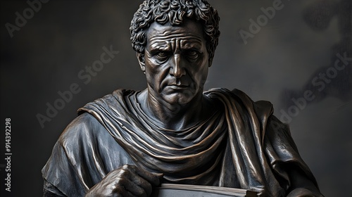 Weathered Bronze Seneca Sculpture with Dramatic Shadows and Etching-Inspired Technique