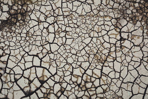 Weathered rough painted surface with patterns of cracks and peeling. Panoramic texture for background and design. Old cracked paint on the concrete wall. Cracked and peeling weathered paint.