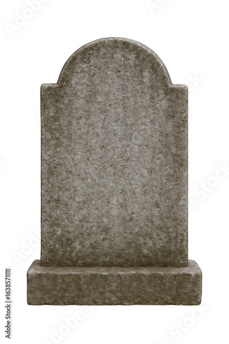 Weathered Stone Gravestone with Rounded Top and Solid Base, Isolated on Black
