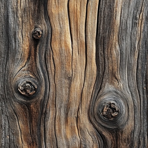Weathered wood texture with knots and grain.