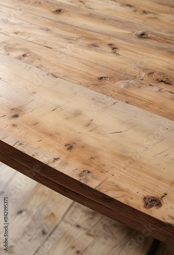 Weathered wooden desk with a beige wooden surface and worn texture , study area, beige wood