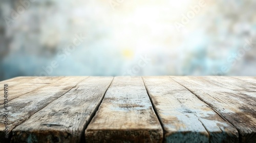 Weathered wooden tabletop with textured planks, softly lit background creating a serene atmosphere for display or presentation.