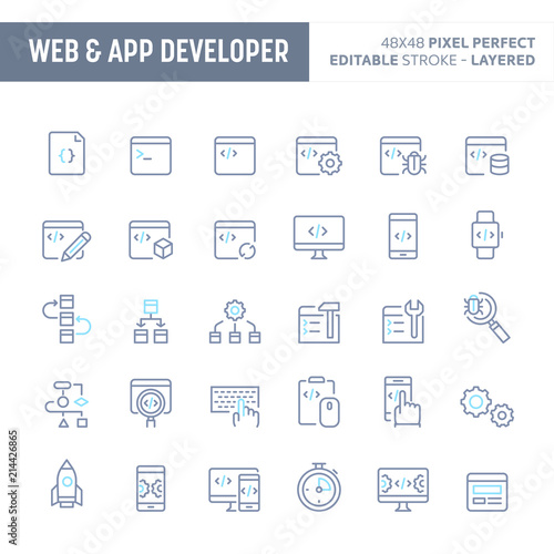 Web & App Developer Minimal Vector Icon Set (EPS 10)