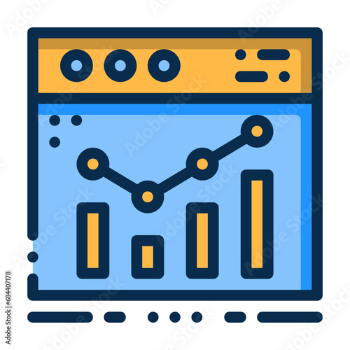 Web analytics icon in outline style represented with a browser window and a bar chart