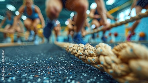 Web banner for fitness, sportsman doing battle rope exercises in the gym, copy space .