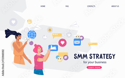 Web banner or landing page template for Social media management and strategy for success, flat vector illustration. Digital advertising, social media marketing.