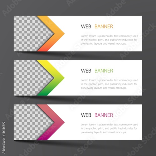 Web banner set design. Inspired by abstract, three color that green orange and purple on the gray background .Vector illustration.