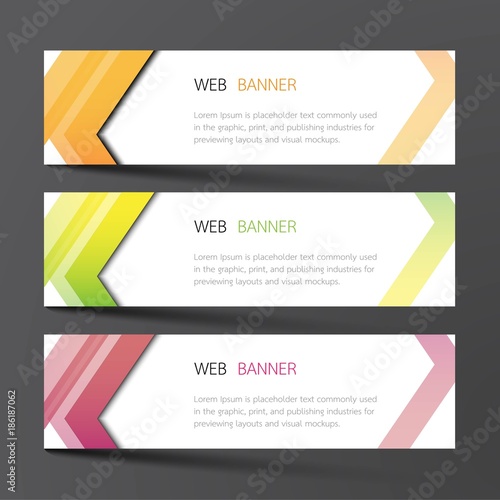 Web banner set design. Inspired by abstract, three color that green orange and purple on the gray background .Vector illustration.
