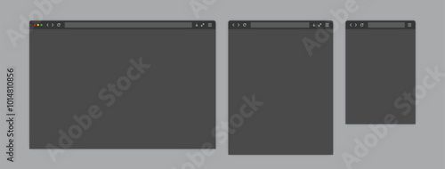 Web browser window dark template. Sample frame design Internet page mockup. Blank screen web browser in flat design. Vector illustration