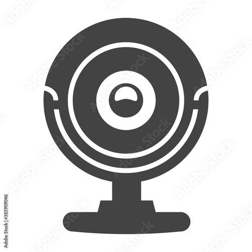 Web camera digital bold black silhouette icon isolated on white. Webcam for computer.
