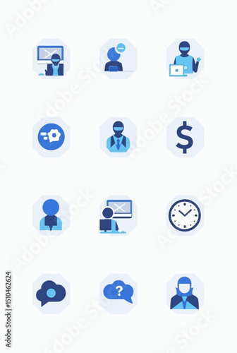 Web communication and internet icons set with cloud computing symbols for business network design