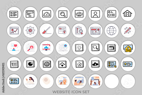 Web design and internet editable icon set. Vector illustration of web design, internet, content, SEO, hosting, blog, homepage, e-commerce and more.