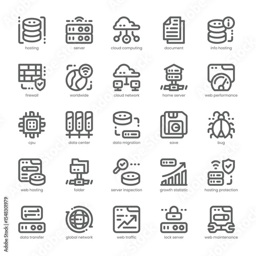 Web Hosting Icon pack for your website, mobile, presentation, and logo design. Web Hosting Icon outline design. Vector graphics illustration and editable stroke.