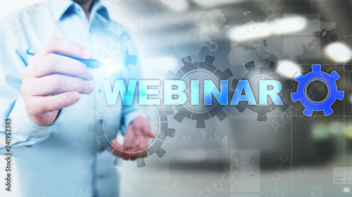 Webinar, Online training, Education and E-learning concept on virtual screen.