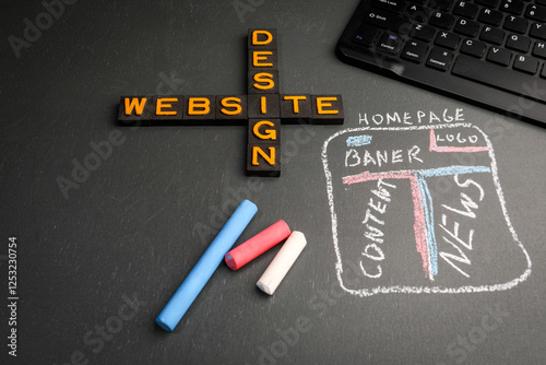 Website Design. Crossword from old alphabet letters tiles