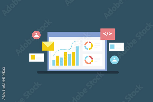 Website Marketing analysis, Website driving organic traffic from search engine and Social media. Website analytics. Vector illustration background.