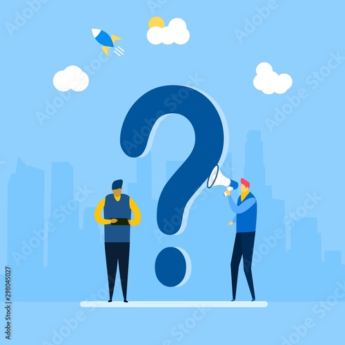 Website or landing page of answer to question metaphor with Tiny People Character Concept Vector Illustration, Suitable For web landing page,Wallpaper, Background, Card, banner,Book Illustration
