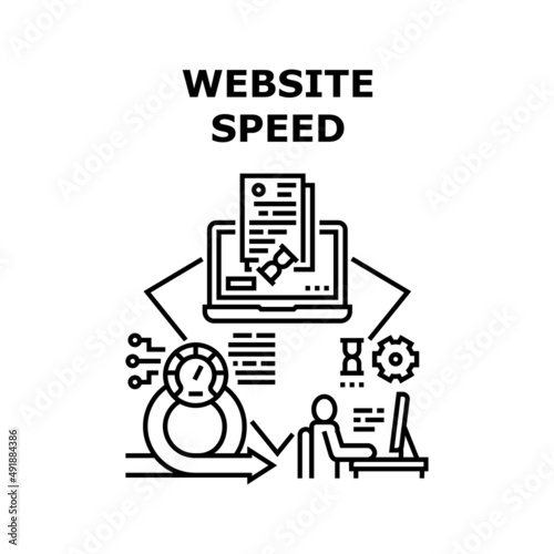 Website Speed Vector Icon Concept. Website Speed Checking Quality Assurance Engineer, Internet Platform And Engine For Fast Data Processing. Time Work And Process Web Page Black Illustration