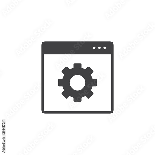 Website with setting cogwheel vector icon. filled flat sign for mobile concept and web design. Browser settings solid icon. Symbol, logo illustration. Pixel perfect vector graphics