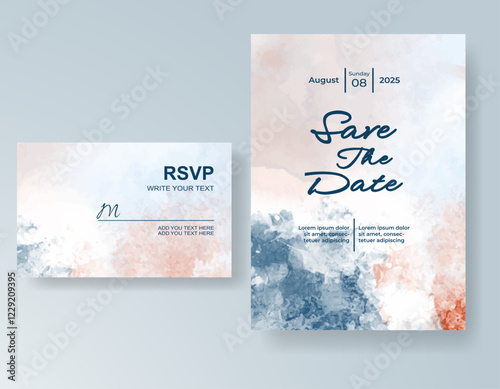 Wedding card invitation template with hand painted watercolor splash