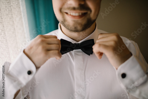 Wedding day, wedding suit. Morning of the groom. Groom morning p