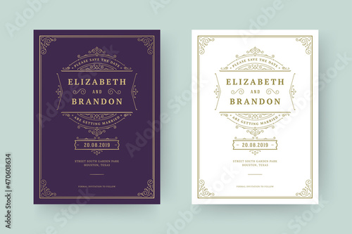 Wedding invitation and save the date cards flourishes ornaments vignette swirls.