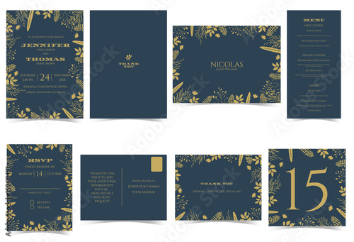 Wedding invitation card Formal style. Bridal shower card. rsvp card. Thank you sticker.Envelope page. Front and Back template. for sweet couple concept .Vector/Illustration