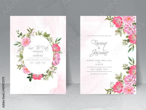 wedding invitation card set with beautiful pink flowers design